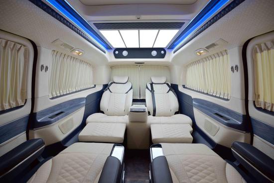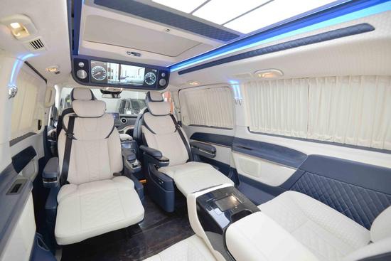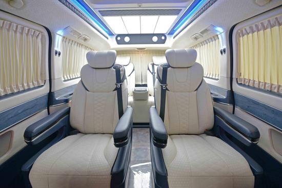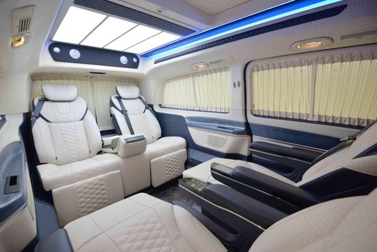 奔驰V260L商务车改装第二排座椅为带电动、加热、按摩、通风功能的航空级首长席,可沿着地面上滑轨实现一键电动式前后滑动,对于这种智能化的乘坐体验,也是原厂车型笨拙的手动拖拽模式所望尘莫及的。