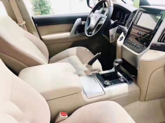 丰田酷路泽5700顶配版本带有真皮打孔座椅和前座椅通风以及后排娱乐系统,音响系统是JBL,底盘升降控制和差速锁和地形蠕行模式在变速器面板可以控制,中东版兰德酷路泽5700全系带有车载冰箱,这个配置是一般车型所没有的,实用性极强。