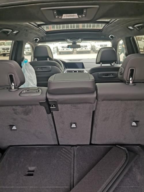 20款平行进口宝马X7M 卓越豪华顶配 采用了全新的设计语言,对于宝马经典的双肾进气格栅,在面积上扩大了很多,几乎占据了X7的整个车头,看起来十分霸气,而且X7对前脸大灯组还进行了升级,车头大灯采用的是矩阵式激光大灯,无论是视觉上还是照明度上都得到了很大的提升,因为是7座车,X7的车身侧面看起来非常长而且厚重,有些类似于路虎的设计风格,大量的平直线条装饰着X7的车身,让这款车的霸气程度提升了很多。