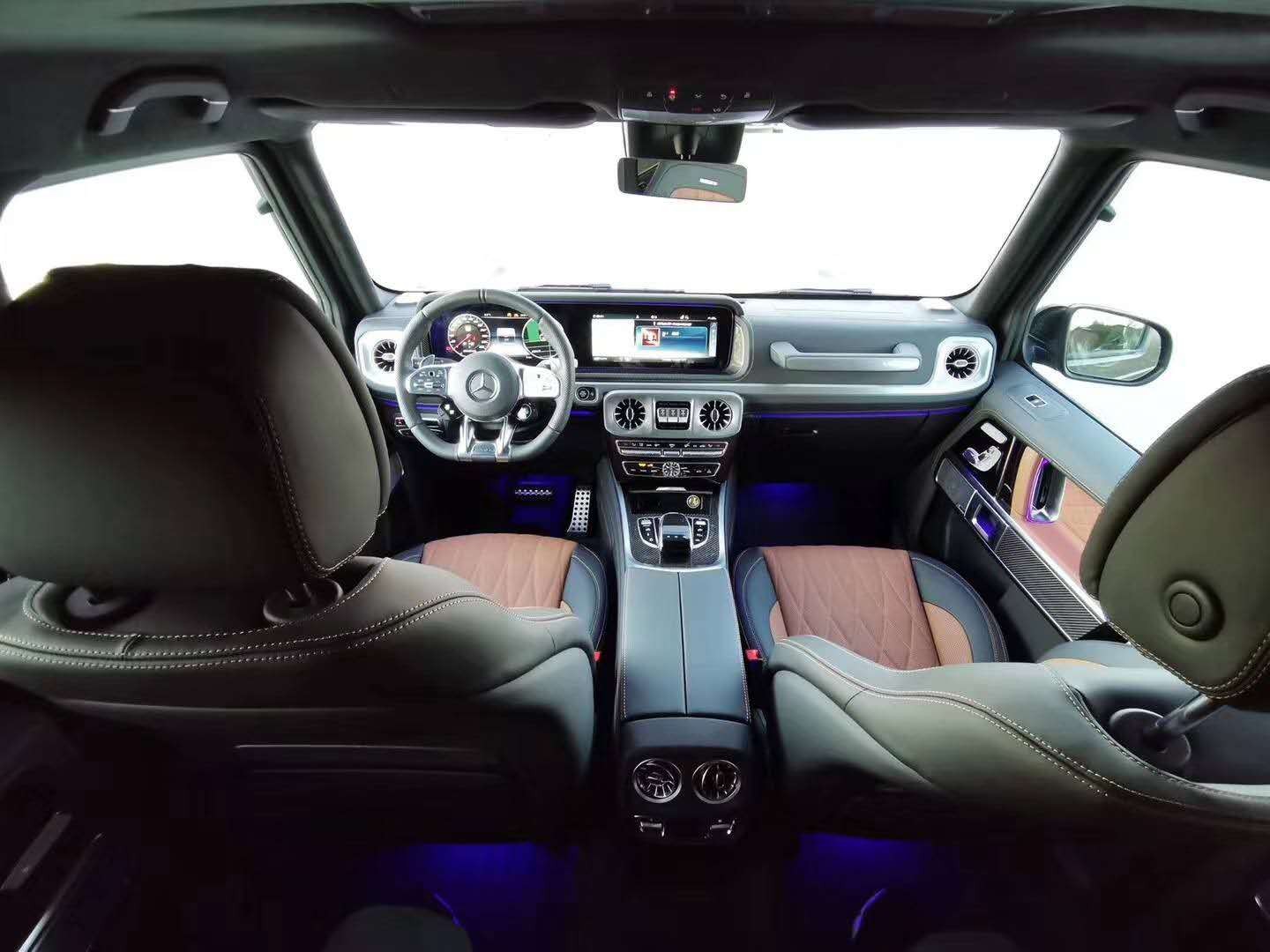 20款加拿大版 全新奔驰G63:内饰方面其实才全新一代G级最大的变化。新车换上了奔驰最新家族式的内饰设计,这无疑让G级拥有了旗舰级应有的豪华感,不过经典的副驾驶席扶手和三把锁的开关键依旧延续了经典设计,并设置在中控台最显眼的位置。其中双12.3英寸高清屏,虚拟仪表盘与中控液晶屏融为一体,视觉上形成一个宽屏驾驶舱,中部的涡扇式空调出风口也颇具设计感,还大量采用了皮革的包覆。另外,新一代G级还对驾乘空间也进行了优化。