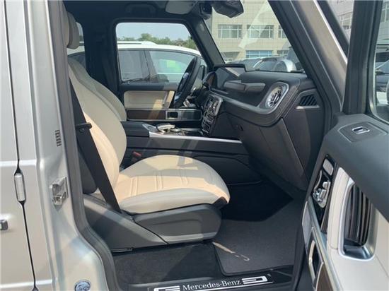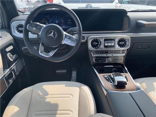 奔驰G500车内采用深色调与桃木装饰,黑色真皮运动座椅非常舒适,方向盘以高档真皮包裹装饰,触感极其细腻。配有桃木装饰的操控台,稳重大气,同时提高了整体的质感。各种功能按钮应有尽有,丝毫不次于豪华轿车的功能;后排空间非常宽敞,且后排的座椅可以折叠,以得到更宽敞的储物空间。
