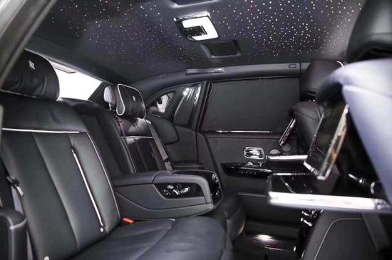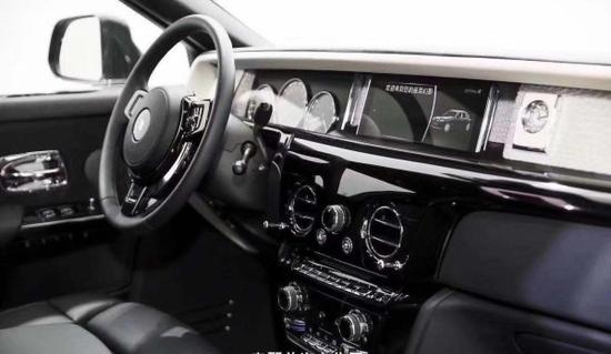 车内设计: 劳斯莱斯幻影车内采用的皮革隐隐地散发着牛的气味,在幻影车上,公众还能看到最高水准的手艺和最优质的材料。坐在左后的乘客欠身去取放在副驾驶的某种物品,这样左后车轮就会受力变小,减震器的传感器会迅速回馈给控制电脑,在不知不觉间达到力传递的完美过渡。后排乘客舱增加了 250 mm 腿部空间,从而不仅提供了宽敞的休闲空间,更增加了实现客户定制的可能性。这是一个能让您感到备受尊宠的私人空间,既是极佳的工作场所,亦适合在约会间隙放松身心。