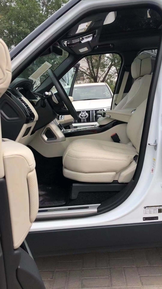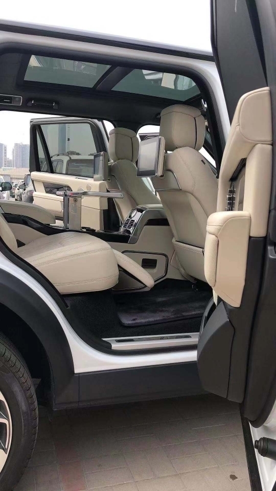 19款巅峰揽胜 (配置|询价)SV限量版揽胜行政 5.0 T创世加长 颜色:白/米配置:22寸刀风轮,五座变四坐,左右腿拖,左右伸缩桌板,菱形格子坐椅,SV创世包 (HUD抬头显示 ,ACC雷达测距 ,1700w顶级音响 ,黑钢琴桃木内饰 ,加热方向盘 ,24向前排按摩通风加热座椅,后排加热通风座椅,氛围灯,环影,盲点辅助,车道偏离警告)挡风玻璃加热,冰箱,空气净化器,交流电源插座 ,SV限量,黑撞顶,加热风挡,备胎,大黑漆,吸烟包,装载空间存放导轨带行李箱。
