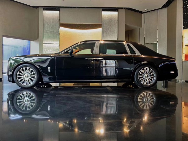 全新劳斯莱斯幻影加长版,长*宽*高是5990mm*2018mm*1656mm,轴距为3772mm,后备箱容量548升,车身重量2745KG,6.8L-V12发动机563匹马力900扭矩,最高车速250公里,百公里加速5.4秒,百公里油耗14.5L。