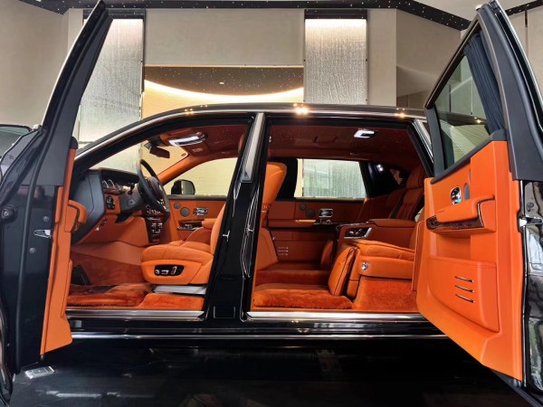 全新劳斯莱斯幻影加长版,沉稳大气的风格让很多人第一眼见到,就马上对其肃然起敬。大尺寸的直瀑式中央进气格栅,方形的头灯,车头的小飞人立标,对开门等都是劳斯莱斯的经典设计。其豪华感和外观淋漓尽致地传递出纯正的劳斯莱斯的尊严和霸气。