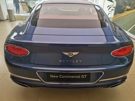 20款宾利欧陆GT W12车尾部分,底部紧致的线条轮廓再结合微微上翘的棱角,勾勒出了全新欧陆GT尾部的动感,椭圆形的尾灯是点睛之笔,与下方椭圆形的排气管相呼应,共同营造了全新欧陆GT车尾的特点。