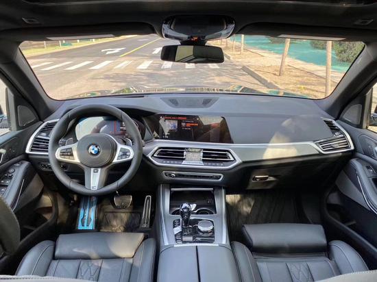 19款宝马X5内饰更加豪华的感觉,用了两块巨大的12.3英寸的屏幕,整车效果不错。大面积的皮质包裹,手感很好,粗大握感十足的皮质方向盘,带换挡拨片,方向盘加热等等,全液晶的12.3英寸的仪表,显示的内容相当丰富,并且显示分辨率和操作响应速度都是相当快,中控换挡区域最大的变化就是,档杆换成了全新的水晶档杆,整体的豪华感和科技感更加强,但是只有顶配才可以选择。