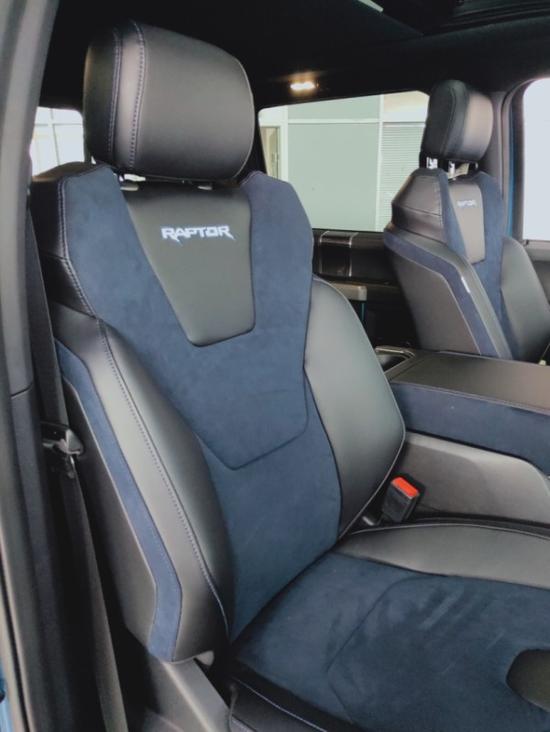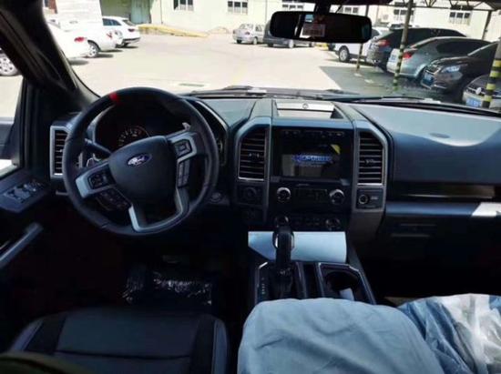 福特F150车内配备标准独特的皮革和布艺装饰的座椅,驾驶员侧的电动十向调节。这些座椅同时具备记忆功能。中央控制区搭配了触控式显示屏,其下方则是多媒体控制区及空调面板,采用旋钮+物理按键的组合。中控功能区域可分为三个小控制区,最上端为音响控制及导航控制,中间为收音机调节控制,最低端为空调及座椅加热控制。