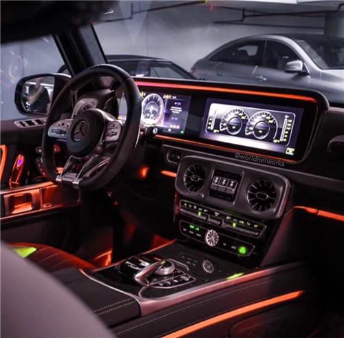 20款奔驰G550从内饰来看,新一代G级使用了奔驰品牌最新的家族式设计元素,包括仪表盘、中控显示屏、空调控制区、COMAND操作区和带有双拇指控制的四辐式方向盘等。中控台功能按键盘设计比较紧密,但是做工精细。双12.3英寸液晶通体屏幕外加与奔驰E (配置|询价) COUPE相同的空调出风口设计,让大G的内饰更加豪华,科技感也有所增强。(更多车型价格配置详情致电文章底部联系方式)