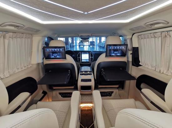 威霆改装房车豪华真皮航空电动按摩座椅,以及高端的科技内饰,能够给车内的商务人士以舒适美妙的乘车感受。电动可旋转按摩座椅,可以自由调节头枕和脚托,肩部、背部、大腿、小腿,按摩部位支持独立控制,5档强度按需调节。