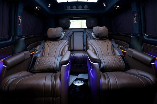奔驰VclassMPV乘客舱前排首长级多功能按摩座椅带脚托,设计了滑轨,可自由电动移动和收缩,适应多种身高、体型的乘客,多种坐姿任君挑选,将舒适惬意延伸到车内每个角落。