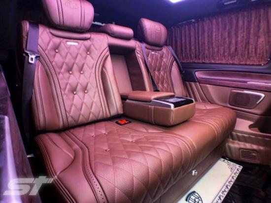 奔驰迈巴赫VS680版,进入第三排我们深刻体验到这一点,第三排的座椅为贯通式设计,材质和舒适度与中排座椅一致,腿部和头部的空间可以用大的夸张来形容,创造出了绝等舒适的享受。