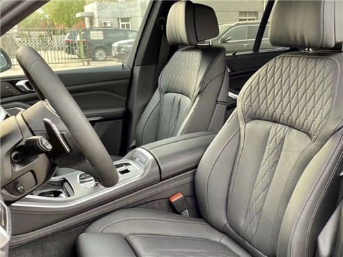20款新一代宝马X5内饰设计更高档,采用三辐式多功能方向盘设计,仪表盘跟宝马X7 (配置|询价)基本一致,采用无框后视镜设计,中控台底部还配备了无线充电功能。20款新一代宝马X5中控功能键盘也重新设计,中控出风口中间还配备了一块小尺寸液晶屏,上面显示一些空调温度和风量。出风口两侧的风量滑轮更精致。