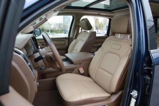 2019款道奇公羊长角号搭载了5.7升V8发动机,与传统的美式肌肉车相同,道奇皮卡也采用了线条浑厚的“肌肉”设计。整体造型以方型为主,饱满感在车辆每一个环节都被表 现的淋漓尽致。主驾位置配备了电动调节功能,副驾仅为手动调节。道奇公羊皮卡配备了克莱斯勒研发的HEMI-5.7升自然吸气发动机,最大功率 283Kw,最大扭矩达到548Nm。