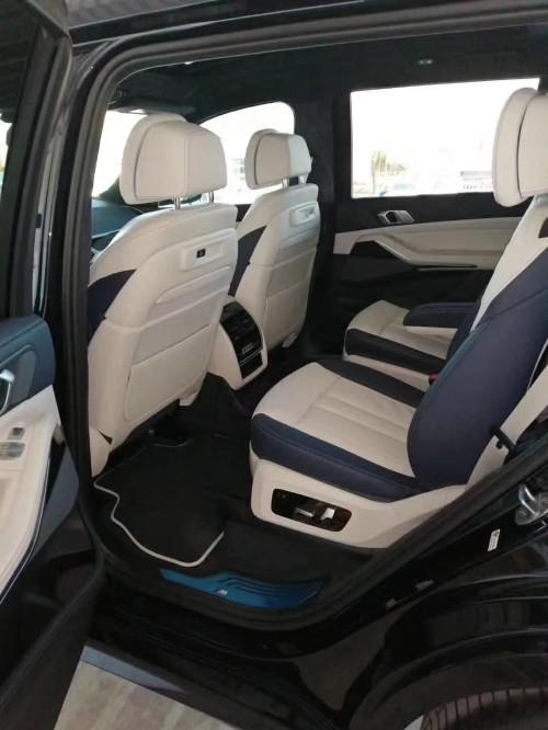 因为是7座车,X7的车身侧面看起来非常长而且厚重,有些类似于路虎的设计风格,大量的平直线条装饰着X7的车身,让这款车的霸气程度提升了很多,车尾的设计则是非常简洁,车标下一条贯穿式的镀铬饰条将车尾一分为二,层次感比较分明,尾部排气造型为双边单出式排气,具有一定的运动感。