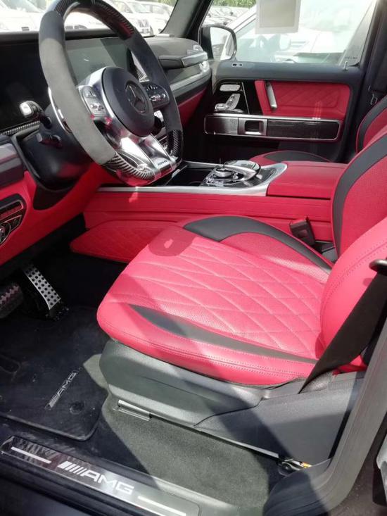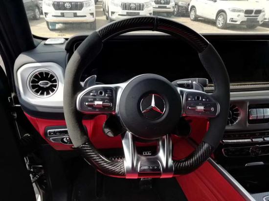 20款加版奔驰G63 磨砂黑/红配置: 运动包 暗夜包 独家内饰包 座椅舒适包 碳纤维内饰 碳纤维方向盘 驱动单元方向盘按钮 熏黑前杠 后换原厂先行版熏黑22轮。手续齐。