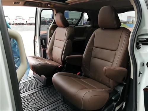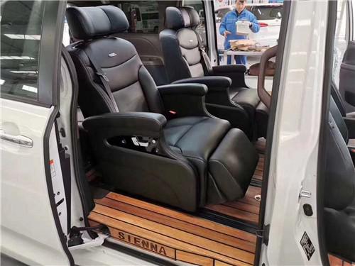 丰田塞纳内部空间非常大,充分发挥了MPV的优势。 座椅全部采用双色真皮,第二排座椅的腿部支撑,放倒第三排座椅,加上腿部支撑,完全变成了两张摇篮床,让长途旅行多了一份舒适。宽敞舒适后座空间,配上该车安全稳定的行驶系统,保证途中也能舒适地谈上生意。