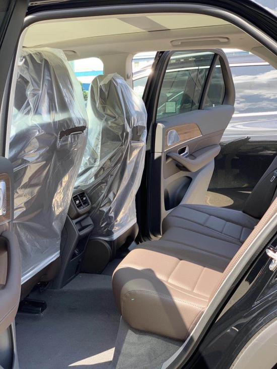 2020款奔驰GLE450车型装备了两段式式全景天窗,开启面积较为可观,座椅造型相比老款更为运动,两侧的护翼有明显的加大。车内采用2 3 2七座布局,第二排座椅造型宽大厚实,支持前后和靠背角度调节,前后调节距离达100mm,地板中间有轻微突起,得益于较长的纵向空间,对中间乘客影响不大。