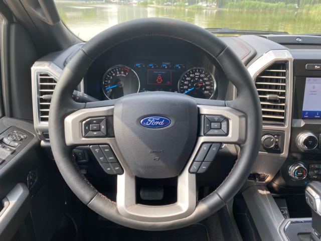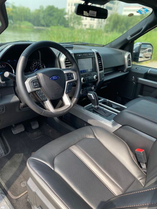 福特F150车内配备标准独特的皮革和布艺装饰的座椅,驾驶员侧的电动十向调节。这些座椅同时具备记忆功能。中央控制区搭配了触控式显示屏,其下方则是多媒体控制区及空调面板,采用旋钮+物理按键的组合。中控功能区域可分为三个小控制区,最上端为音响控制及导航控制,中间为收音机调节控制,最低端为空调及座椅加热控制。