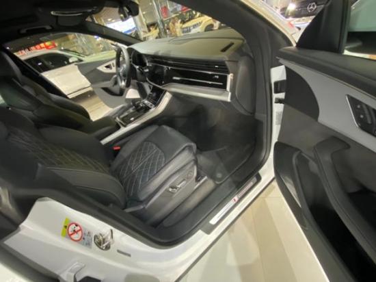 进入车厢内部,会感觉奥迪Q8和全新A8 (配置|询价)的设计高度雷同, 奥迪全新家族化设计,科技感十足的虚拟驾驶舱氛围,同样的三块大屏,横向贯穿的前排空调出风口, 中控台采用大面积的真皮包覆,且向驾驶员一侧倾斜,形成以驾驶员为中心的驾驶舱。
