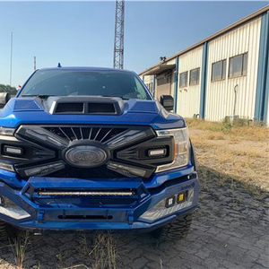 全新福特猛禽F150方方正正的前大灯与前保险杠造就了完美的车头造型与比例,进气格栅采用蜂窝状网格设计,并配以雕刻式的福特品牌标识。其前保险杠相当硬朗,且保险杠下方配备金属护板,以应对极端路况环境。整体的车架由高强度钢冲压而成,这样不但提高了车身的耐用性,更对乘客在安全方面有了进一步的保证。