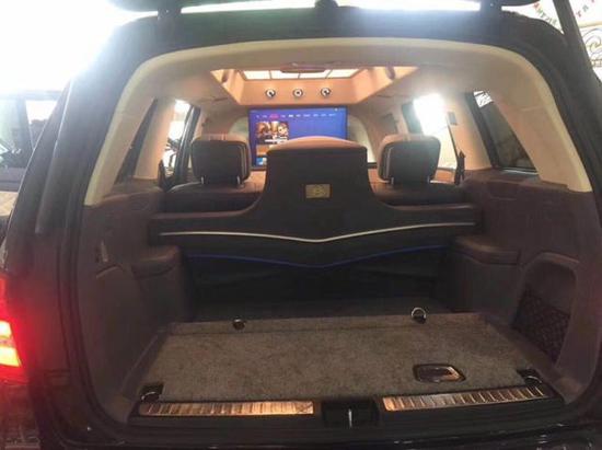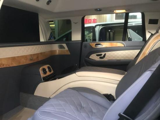 奔驰GLS450加长采用2+2或2+4座椅格局,2个电动隐藏座椅+中央电动吧台组合。后车舱的豪华程度堪比私人飞机般豪华,柚木地板铺设,车身牛皮包裹,局部格棱纹设计处理。大面积的雀眼枫木装饰使内饰奢华感倍增。在吧台下方还有一张隐藏式电动商务会议桌。