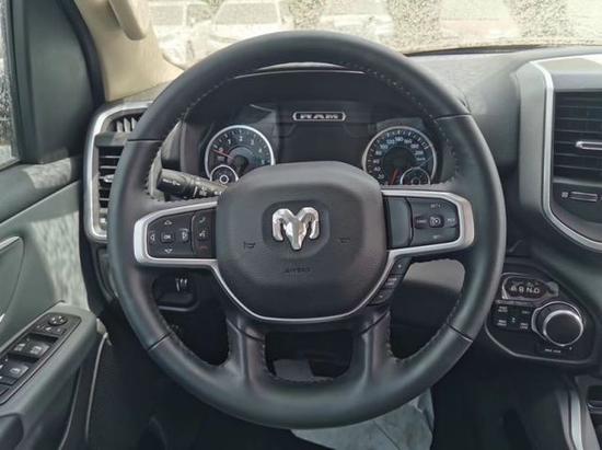 20款道奇公羊大角牛皮卡在内部设计上还是延续了美式那种比较粗犷的风格,规整的中控台设计看上去比较死板,但丰富的配置会让你不由得为其称赞。中控台的设计简洁硬派,符合公羊的气质。仪表盘底边有花纹,则更加凸显了这款车的文雅性。软性材质的仪表台设计,摸上去手感非常舒服,并无些许生硬之处。