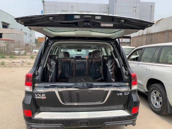 丰田酷路泽5700顶配版本带有真皮打孔座椅和前座椅通风以及后排娱乐系统,音响系统是JBL,底盘升降控制和差速锁和地形蠕行模式在变速器面板可以控制。中东版兰德酷路泽5700全系带有车载冰箱,这个配置是一般车型所没有的,实用性极强。