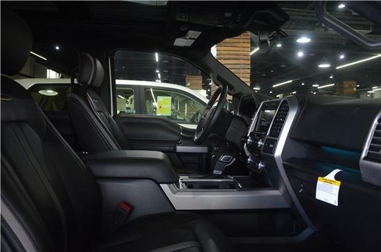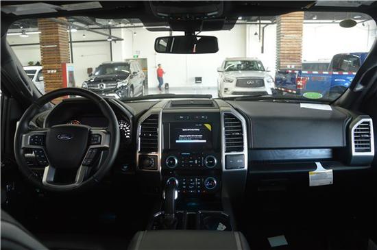 19款福特F150猛禽皮卡车内配备标准独特的皮革和布艺装饰的座椅,驾驶员侧的电动十向调节,这些座椅同时具备记忆功能,中央控制区搭配了触控式显示屏,其下方则是多媒体控制区及空调面板,采用旋钮+物理按键的组合。
