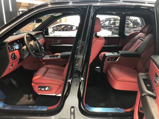 RR库里南 黑红四座现车 劳斯莱斯-库里南(四座)外观颜色:钻石黑内饰颜色:热刺红+黑选配:座椅缝线(黑) 座椅滚边(黑) RR头枕刺绣(黑) RR定制音响 外部电动关门 前排座椅按摩 22寸7幅部分抛光轮毂 羔羊毛脚垫 后排影院系统特殊定制内部氛围设计 全景天窗 后排桌板 前后排通风座椅 后排独立座椅(冰箱+酒柜+后排座椅按摩) 风格钥匙 后尾箱预留设置。