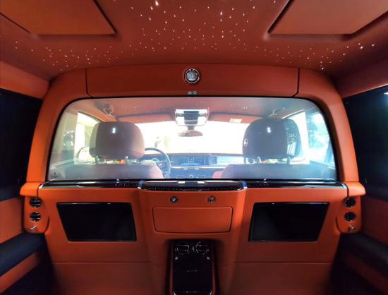 劳斯莱斯幻影私密性应该也是幻影车主比较在意的事情,坐在幻影后排,你可以很好的隐藏在C柱的角窗里,不让外界看到车内的乘客真容。为了让后排乘客有更好的隐私,幻影选用了传统的窗帘,轻轻按动位于门板上的按钮,后风挡以及左右两侧的窗帘就会缓缓拉动,这动作要比两根塑料棍带着一个塑料纱窗更有仪式感,并且同时织物的手感也高级了不少。