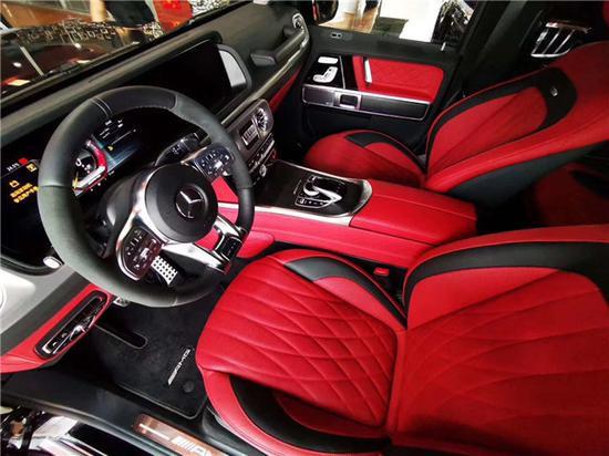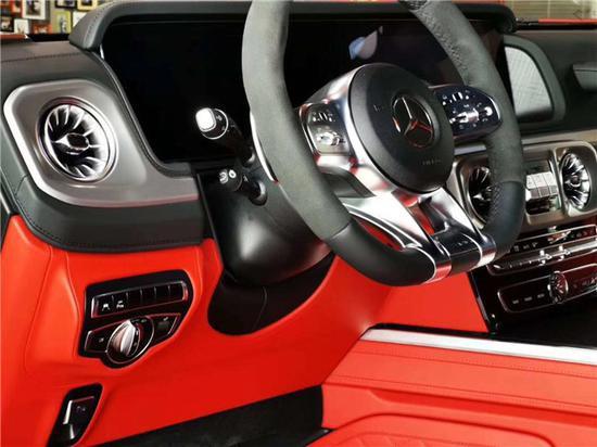 20款奔驰G63中控12.3英寸液晶通体屏幕外加与奔驰E COUPE相同的空调出风口设计,让大G的内饰更加豪华,科技感也有所增强。三点以及九点处的多功能按键也与S级 (配置|询价)车型相同,两侧黑色触控按键可以控制仪表盘信息,其中行车电脑和右侧模拟仪表都可以进行切换,可显示油耗、续航里程、车辆状态等信息。在内饰用料方面,奔驰全新G级内部均采用了真皮材质包裹,手感极佳。