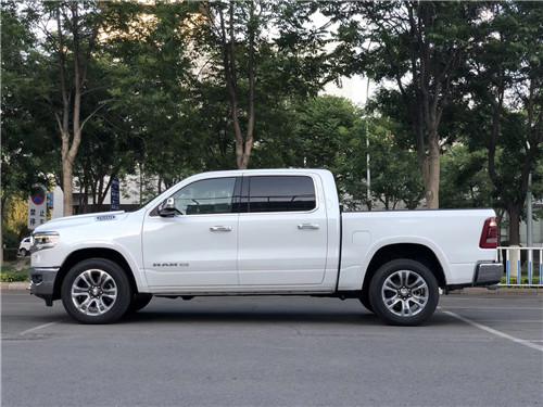 2020款道奇公羊大角牛不仅外观上刚劲有力表现出皮卡车所具备的硬朗风范,而且内部配备的豪华性在同级别车中同样可圈可点。道奇公羊长角号的眼神中没有透露出一丝的活泼神韵,唯一展现出来的只有凶狠。2017款道奇公羊长角号进气口位于右侧大灯的位置,高度在一米左右,高于绝大多数轿车和 SUV,另外20英寸的大脚也算是运动气质的一种表现。硕大的中网造型同样很震撼,“高鼻梁”的设计风格也是车头部位凶猛的精髓之处。车头使用了小幅前倾的俯冲式设计思路,意在突显霸气和威猛。