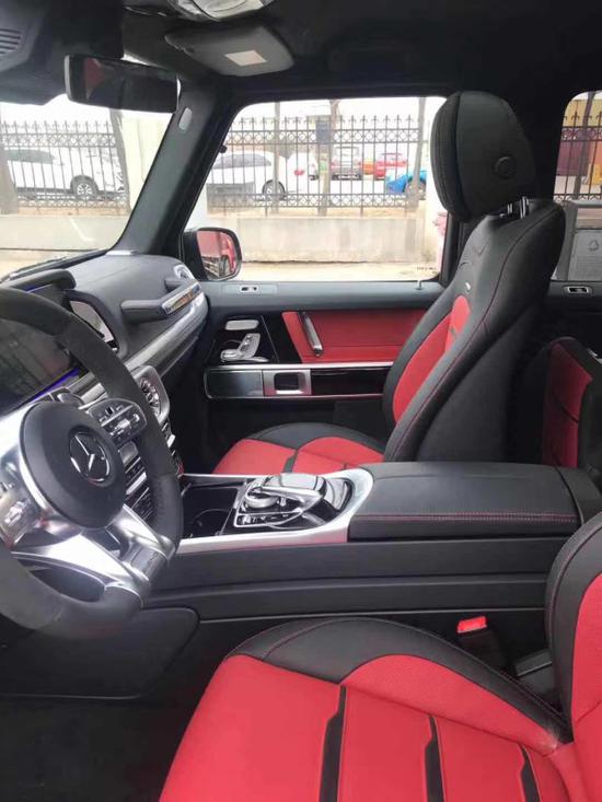 2020款奔驰G63现车黑红,包牌包税,已经上完牌配置:9速AMG变速箱 21轮 22轮可选装,可调阻尼底盘,主动车道保持,主动刹车辅助,AMG红色卡钳 ,雷达测距,柏林之声3D音响,电动天窗,氛围灯,倒影,停车辅助,几何多光束LED大灯,AMG暗夜包,座椅加热,Alcantara翻毛皮方向盘