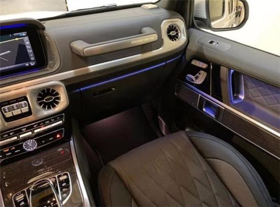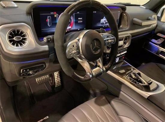 20款全新G63内饰方面,新G63保留了新G500 (配置|询价)的整体设计,除配色差异外,新车还换装了全新造型的平底式AMG运动方向盘,其两侧配以打孔皮质包裹,下部镀铬装饰的造型也与新G500明显不同,看上去十分战斗。此外,全液晶仪表盘+中控大屏的双12.3英寸屏幕设计在新车上也没有缺席,营造出了浓郁的科技感。