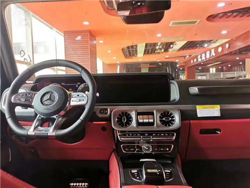 黑红搭配的座椅,运动氛围更强,相较于老款G63,座椅在舒适性、支撑性以及功能性上都有了很大的提升。座椅带有多项调节,集中在门板处,而腰部支撑和侧支撑也支持多级调节,但需要通过COMAND旋钮在屏幕中调节。