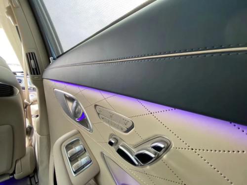 全新奔驰S560后排腿部空间达76mm,足够舒适地伸张腿脚。值得一提的是,新S级的氛围灯颜色由过去的7种升级为64种,同时提供了10种预设的颜色搭配,乘客还能根据个人喜好在不同位置自定义不同的颜色显示。迈巴赫S560后排座椅可以进行加热、通风和背部角度调节,尤其是腿托升起后可形成一个近乎平躺的状态,舒适度绝对不次于大型客机的商务舱座椅