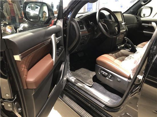 20款丰田酷路泽5700内饰整体风格还是偏质朴,没有多少视觉冲击力,但用料厚道,手感出众,大都是皮质或者搪塑的软材料,方向盘夹杂着木纹饰条,握起来也很有感觉。