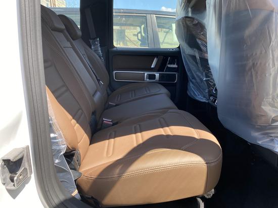 20款奔驰G500全新的三幅式真皮实木多功能方向盘前面是最新家族的液晶显示屏幕,具体功能不一一介绍,,屏幕分辨率更高,清晰度更高 1、金属漆 2、AMG暗夜包 3、21熏黑轮毂 4、黑色保护杠 5、前后红卡钳6、12.3英寸大屏 7、360度环车影像 8、通风 9、第二代触摸屏 分辨率更高,更灵敏! 增强尊享内饰包(菱形座椅,无框后视镜 ,红色,nappa真皮仪表台,designo DINAMICA顶棚,前排多轮廓座椅,前排按摩座椅,前排通风座椅,前排快速座椅加热) AMG暗夜包(黑色外观套件,黑色防撞杠,熏黑大灯,尾灯,示宽灯)。