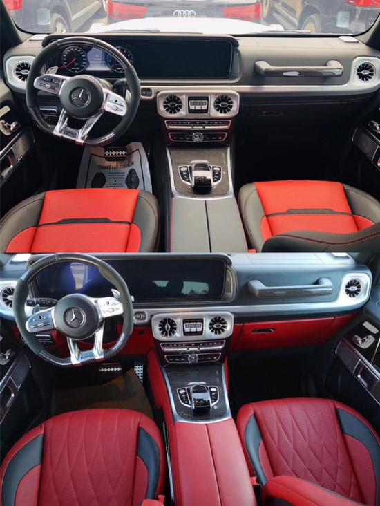 G63分美规、欧规、加版和墨版,颜色也有白,亮黑,磨砂黑、墨绿、酒红、红、沙漠金、以及银色灰色等 ,新款档次、质感和科技配置都明显提升全新奔驰G级的内饰相比老款有了明显的提升,采用了奔驰的双屏幕式设计,全液晶仪表盘和中控台屏幕都达到12.3英寸。同时内饰质感和工艺都有了很大的进步。较之于现款车型,它的内饰发生了巨大的变化,融入了不少现款奔驰S级 (配置|询价)、E级的设计元素,从而变得更加豪华,而家族式的连屏设计则凸显了车内的科技感。经典的“三把锁”按键得以保留是众多粉丝最大的福利,像很多的硬派越野都在减少差速锁的数量,减少造价赢得更多的销量,奔驰G系列三差速的保留让得它依然是硬派越野的综合性能的领头羊!