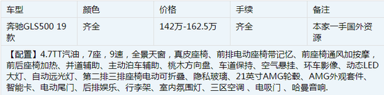 19款奔驰GLS (配置|询价)500墨西哥版全尺寸SUV尾灯也是采用LED设计,添加了几分时尚与动感。配上新款LED鹰眼大灯,无论在正面还是侧面给人带来的视觉感都非常气派。车头采用了奔驰最新的家族设计风格,大灯的样式与其它车型更加相似,LED日间行车灯也融入其中,看上去更有整体感。车尾的主要变化就是尾灯,其内部结构进行了重新调整。详情如下表: