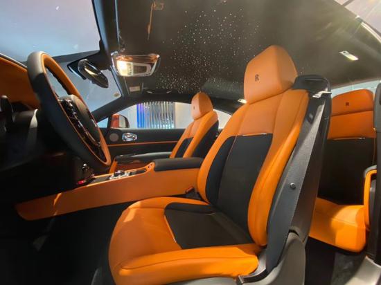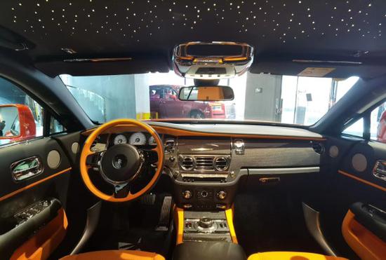这台魅影Black Badge的车顶蒙层还配备了劳斯莱斯的星光顶棚,是由1340根独立光导纤维手工编织而成,每颗“星星”都可调节,以营造不同的氛围,而且该选装配置也有私人订制项目,根据客户需求可以定制各样效果的星空顶,以满足不同客户天马星空的想象力。