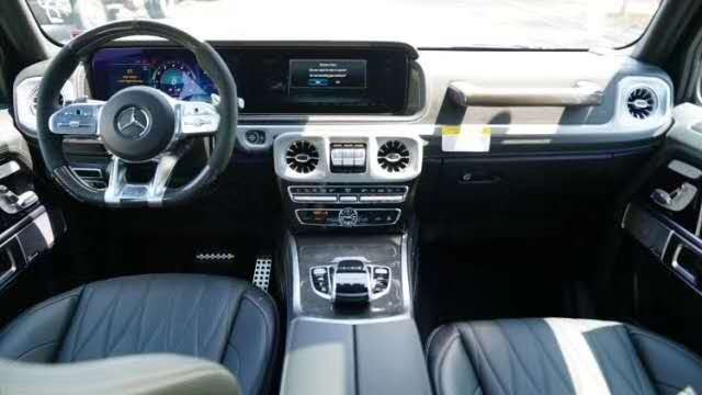 2020款美规奔驰G63满配 内饰:档次、质感和科技配置都明显提升全新奔驰G级 (配置|询价) 的内饰相比老款有了明显的提升,采用了奔驰最新的双屏幕式设计,全液晶仪表盘和中控台屏幕都达到12.3英寸。同时内饰质感和工艺都有了很大的进步。较之于现款车型,它的内饰发生了巨大的变化,融入了不少现款奔驰S级 (配置|询价) 、E级的设计元 素,从而变得更加豪华,而家族式的连屏设计则凸显了车内的科技感。当然了,经典的“三把锁”按键自然不会缺失,并且设置在中控台最为显眼的位置。