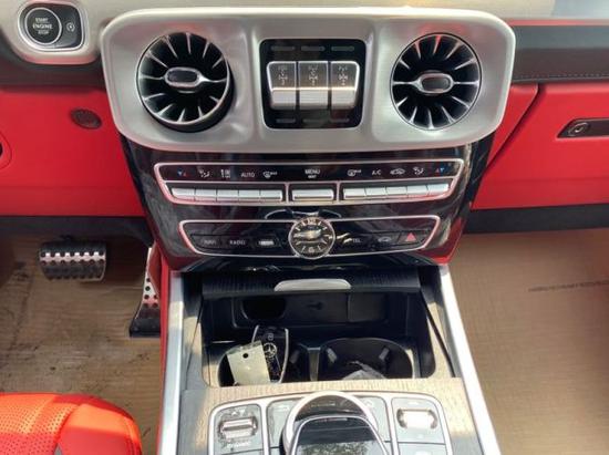 20款加拿大版 全新奔驰G63:内饰方面其实才全新一代G级最大的变化。新车换上了奔驰最新家族式的内饰设计,这无疑让G级拥有了旗舰级应有的豪华感,不过经典的副驾驶席扶手和三把锁的开关键依旧延续了经典设计,并设置在中控台最显眼的位置。其中双12.3英寸高清屏,虚拟仪表盘与中控液晶屏融为一体,视觉上形成一个宽屏驾驶舱,中部的涡扇式空调出风口也颇具设计感,还大量采用了皮革的包覆。另外,新一代G级还对驾乘空间也进行了优化。