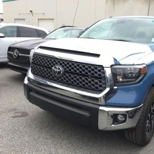20款丰田坦途是丰田车系中最大型号的皮卡,前半个车身的外形和丰田红杉几乎一摸一样,整体轮廓明显具有美国式汽车特有的风格。20款丰田坦途TRD版皮卡的车头前脸造型上更加硬朗,粗壮的横幅格栅展现出极其坚实的力量感,宽大硬朗的车身,粗犷有力,凸显美国车的风范,前脸明显外张的挡泥板以及前突的坚固格栅尽现强悍风格。20款丰田坦途5700这款皮卡之王操控优越,结合了美式的粗狂和日系的精致,硕大的前灯像是瞪大了的牛眼,狂野气息昭然若揭。