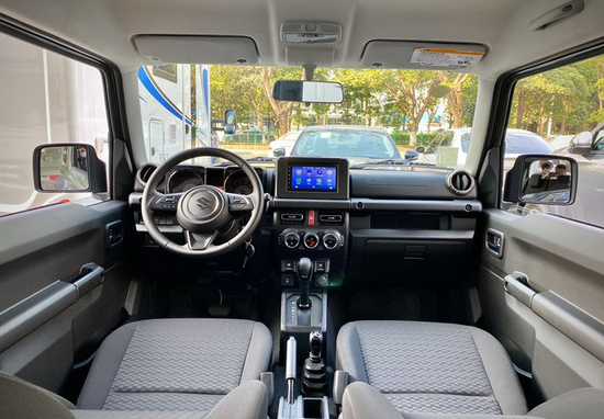 内部设计虽然带着一丝的古朴,但能看出日系车的风格,虽然这台吉姆尼是顶配车型,但只有织布的座椅,中控比较方正,也带有层次感,所有的部件都显得比较小巧。
