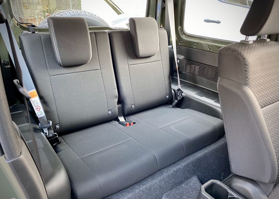 后排的座椅比较单薄,当然了吉姆尼是两门四座车型,后排上下车非常不方面,大多数作为应急使用,基本都是老实放倒当做后备箱来用。