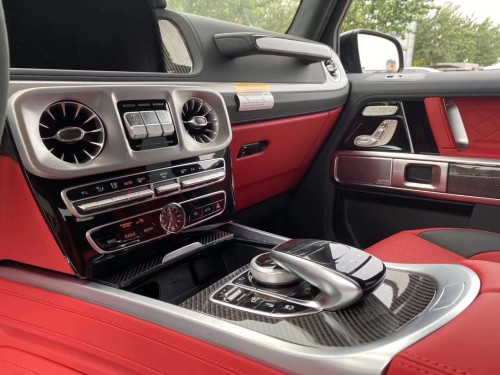 20款奔驰G63 AMG精选皮革搭配碳纤维内饰装饰风格彰显了顶级经典越野车的风采。奔驰G63 AMG进口SUV豪车内饰设计更具时代感也更加豪华。新款G63 AMG独立的液晶显示屏如同奔驰A等新车型一样,被立在中控台上方,这样更加方便阅读信息。大多数奔驰的电子系统都出现在这个全新的豪华内厢里,包括COMAND和HD卫星导航系统。中控台多处均采用碳纤维材料覆盖,带彩色TFT显示屏的AMG。