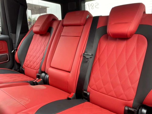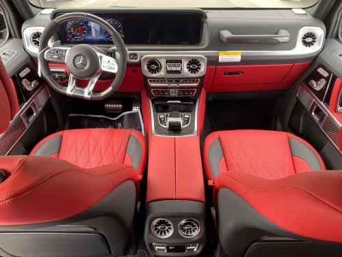 奔驰G63提供多种配色内饰,运动型AMG座椅座椅上配有真皮打孔或钻石图案拼接的设计,同时在安全带、手刹以及方向盘等皮质接缝处还采用充满激情的红色缝线,让特别版车型的内饰氛围别具一格。