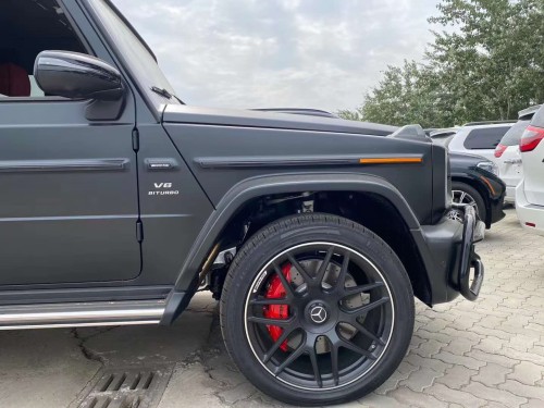 2020款奔驰G63 (配置|询价)外观设计硬挺,经典方盒子造型很有辨识度,机械野性呼之欲出,前脸竖条格栅沉稳,圆形灯组复古,发动机舱线条凸起,车身侧面棱角分明,硕大的车窗相当透亮,20寸大轮毂配红色刹车卡钳极有性能范儿,后尾部方正霸气,后挂书包很符合男人审美。